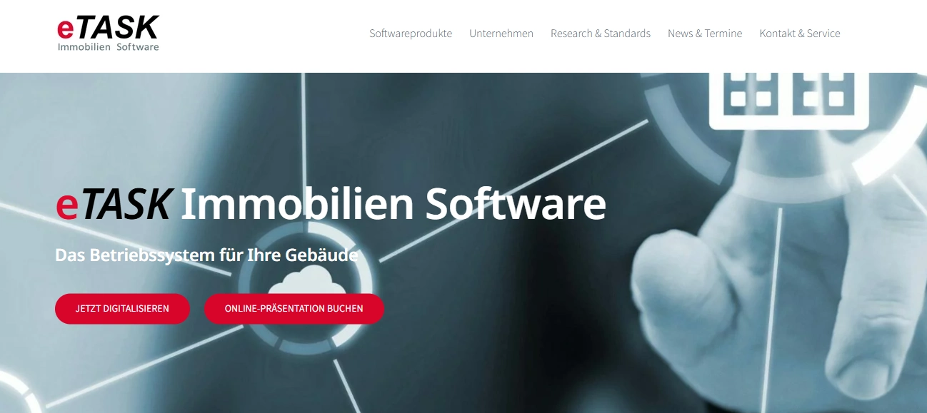eTask ist ein Anbieter von Gebäudemanagement-Software, der mehrere spezialisierte Produkte für den Immobilienbetrieb entwickelt. Neben dem CAFM-Programm gehören auch Inventur und Gewerbemanagementssysteme zum Portfolio.