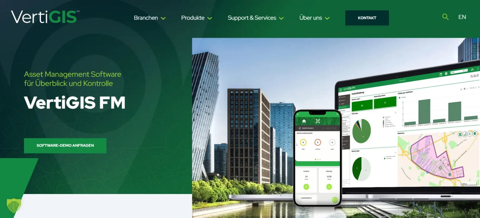 VertiGIS FM ist ein umfassendes CAFM- und Asset-Management-System mit starker GIS-Ausrichtung. Die Software deckt ein breites Spektrum an Funktionen für Gebäude, Anlagen, Infrastruktur, Energie, Verträge und Grünflächen ab und lässt sich durch VertiGIS Studio flexibel an individuelle Prozesse anpassen.