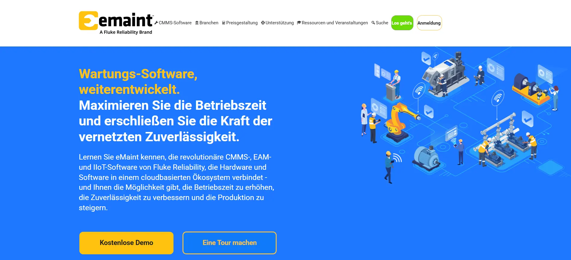 | eMaint | Lebensmittel & Getränke, Lebenswissenschaften, Fertigung & Produktion | 69,00 € (für Team-Lizenz) 80,00 € (für Professional-Lizenz) | Nein (Zugang nach Gespräch mit Verkaufsmitarbeiter) | Industrieunternehmen, die API-Integrationen benötigen |