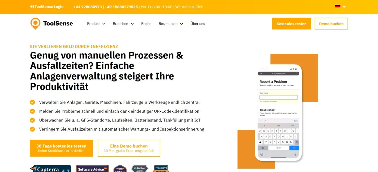 | ToolSense | Bauwesen, Reinigungsunternehmen, Hersteller & Händler | N/A | Ja, für 30 Tage | Für Unternehmen, die eine Geräteverwaltung mit IoT-Sensoren benötigen |