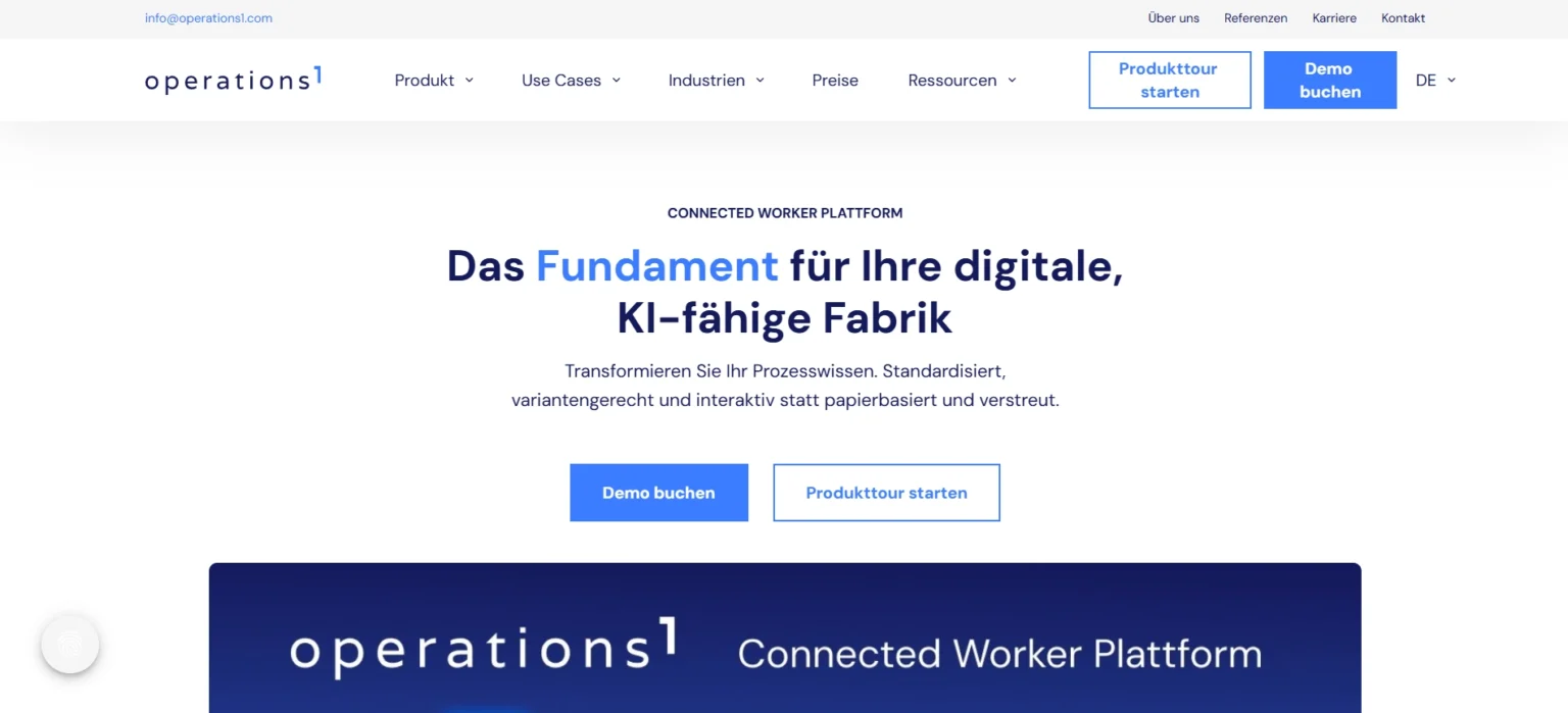 | Operations1 | Maschinen- & Anlagenbau, Land- & Nutzfahrzeuge, Industriegüter | N/A | Nein (Zugang nach Gespräch mit Verkaufsmitarbeiter) | Unternehmen, die erweiterte und vernetzte digitale Checklisten benötigen |