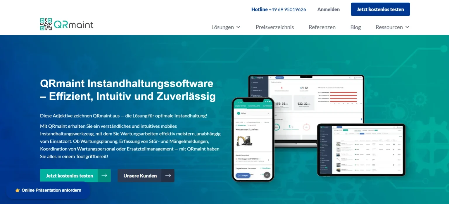 | QR-Maint | Fertigung, Anlagen, Helpdesk | 10,00 € (für Standardnutzer), 21,00 € (für professionelle Nutzerlizenz), 31,00 € (für Premiumlizenz) | Ja, für 14 Tage | Für Wartungsteams, die eine einfache und günstige mobile App benötigen |