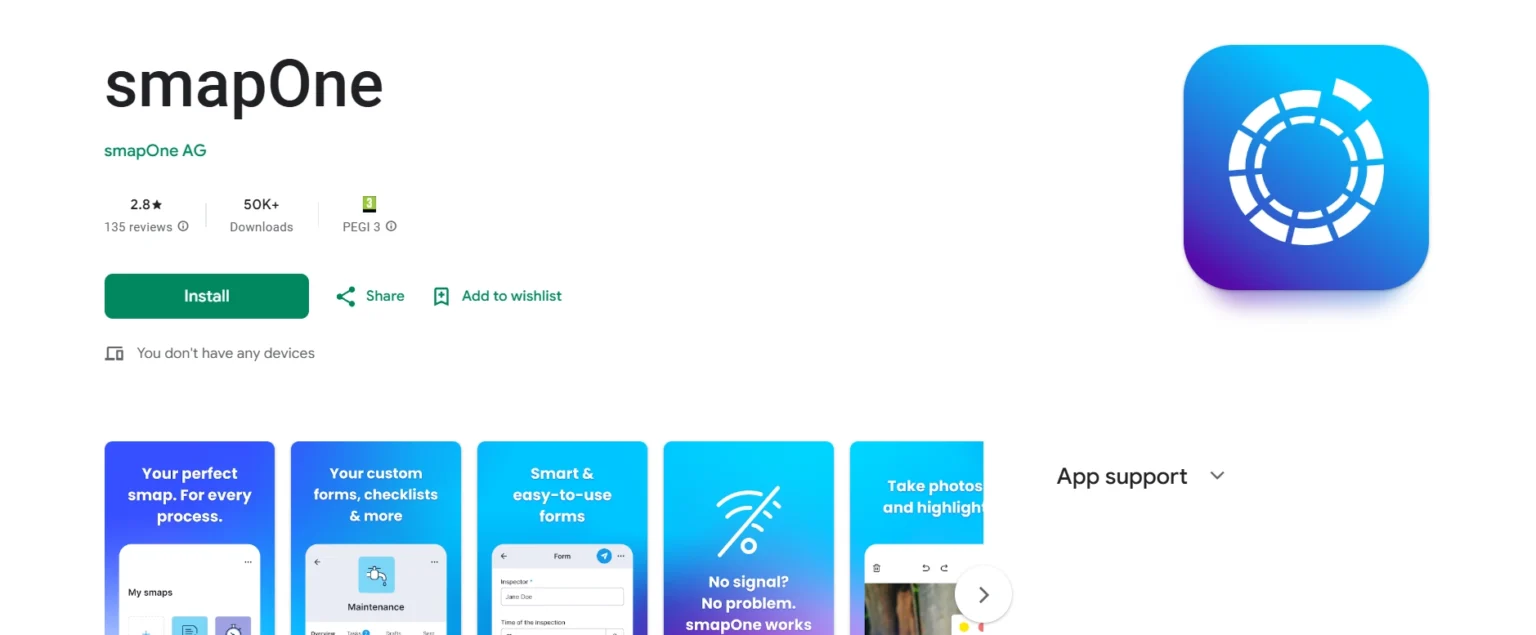 smapOne non è un’app tradizionale per la gestione delle strutture, ma una piattaforma che consente alle aziende di creare le proprie app per le strutture. L’obiettivo è la digitalizzazione dei processi operativi, precedentemente basati sulla carta, come liste di controllo, registri, rapporti sui danni, letture dei contatori e registri di manutenzione.